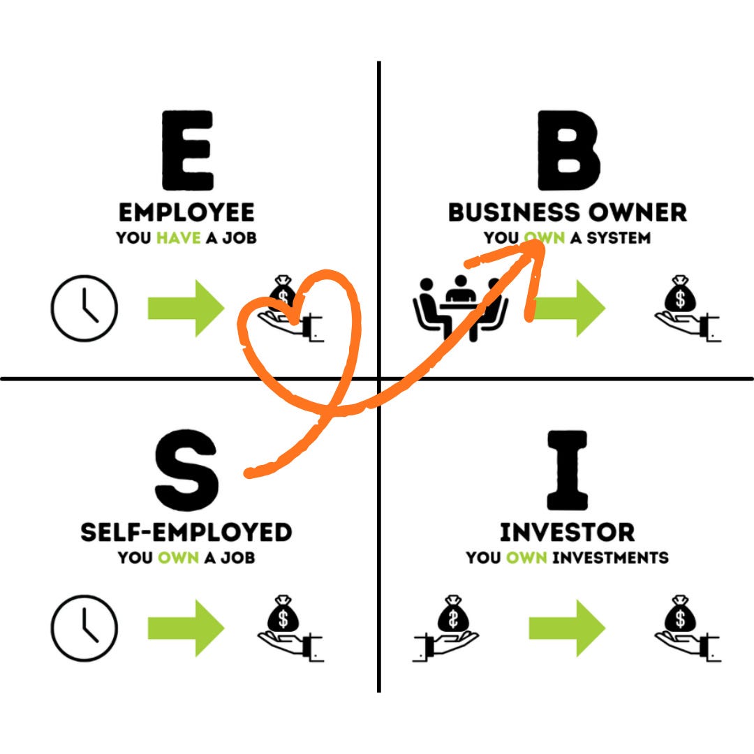 In the S quadrant, you own your job. Your income depends on your time. Your freedom doesn’t grow with your revenue. You might have a team, systems, even an office. But if everything still runs through you, you are ultimately trading your time for money.